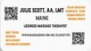 www.massagebook.com/me/juliescott09 www.massagebook.com/biz/seasonally-yours-therapeutic-massage Maine - Summer & Fall 2025 June 19 - November 20 2025 in Maine 207-229-9602 All Scheduling is done on-line via Massagebook.